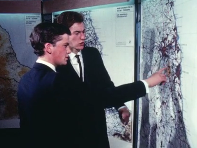 We see the public meetings, the development corporation at work, the sites being cleared and new buildings going up. We see statistics and predictions, maps and charts. Locals wander round exhibitions of maps and models.